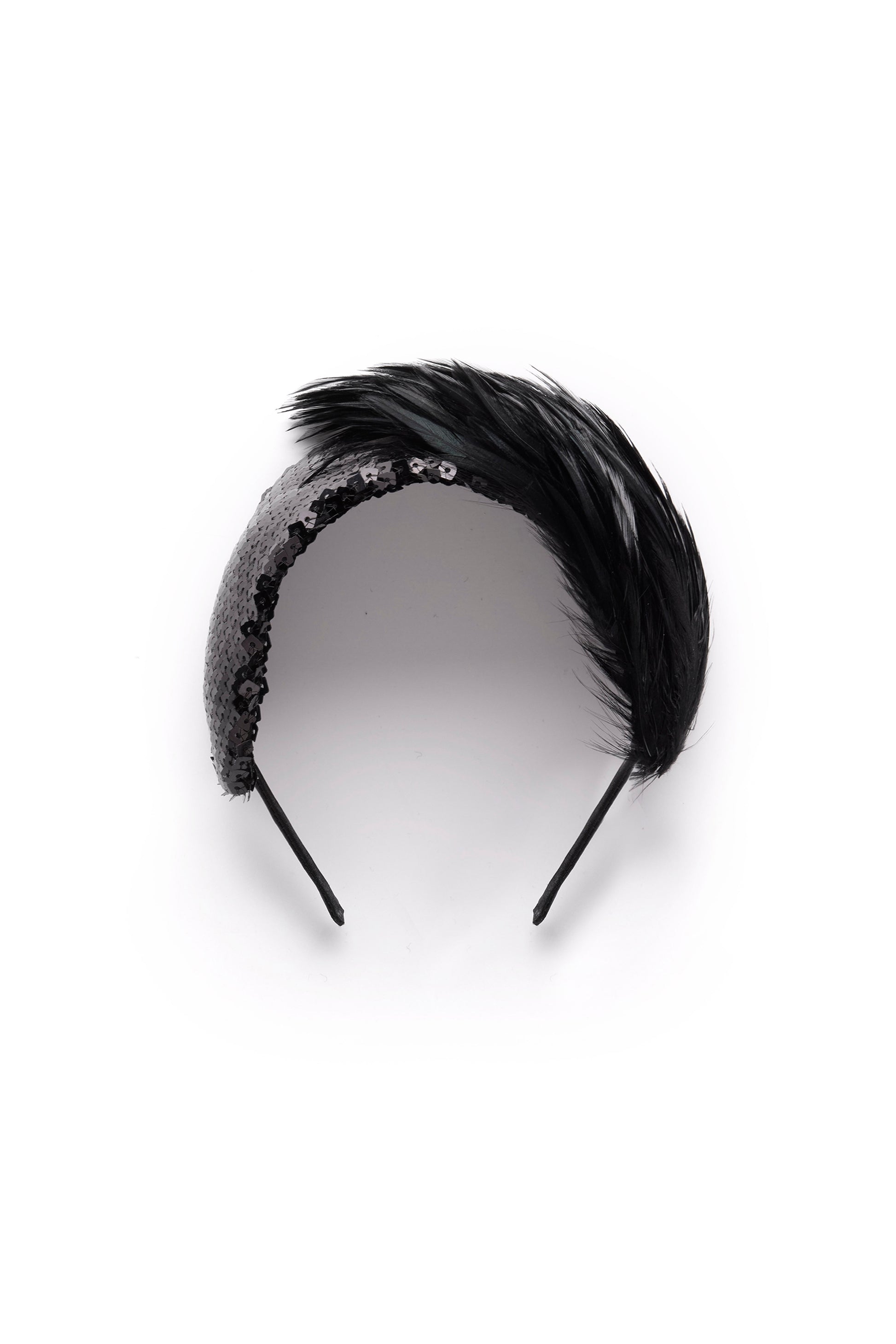 Tie your hair with love, with the ideal headband in sequins and feather.