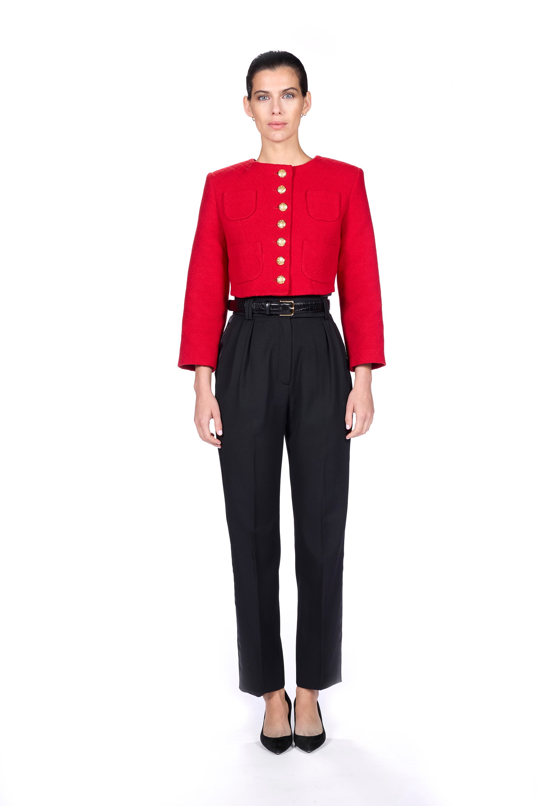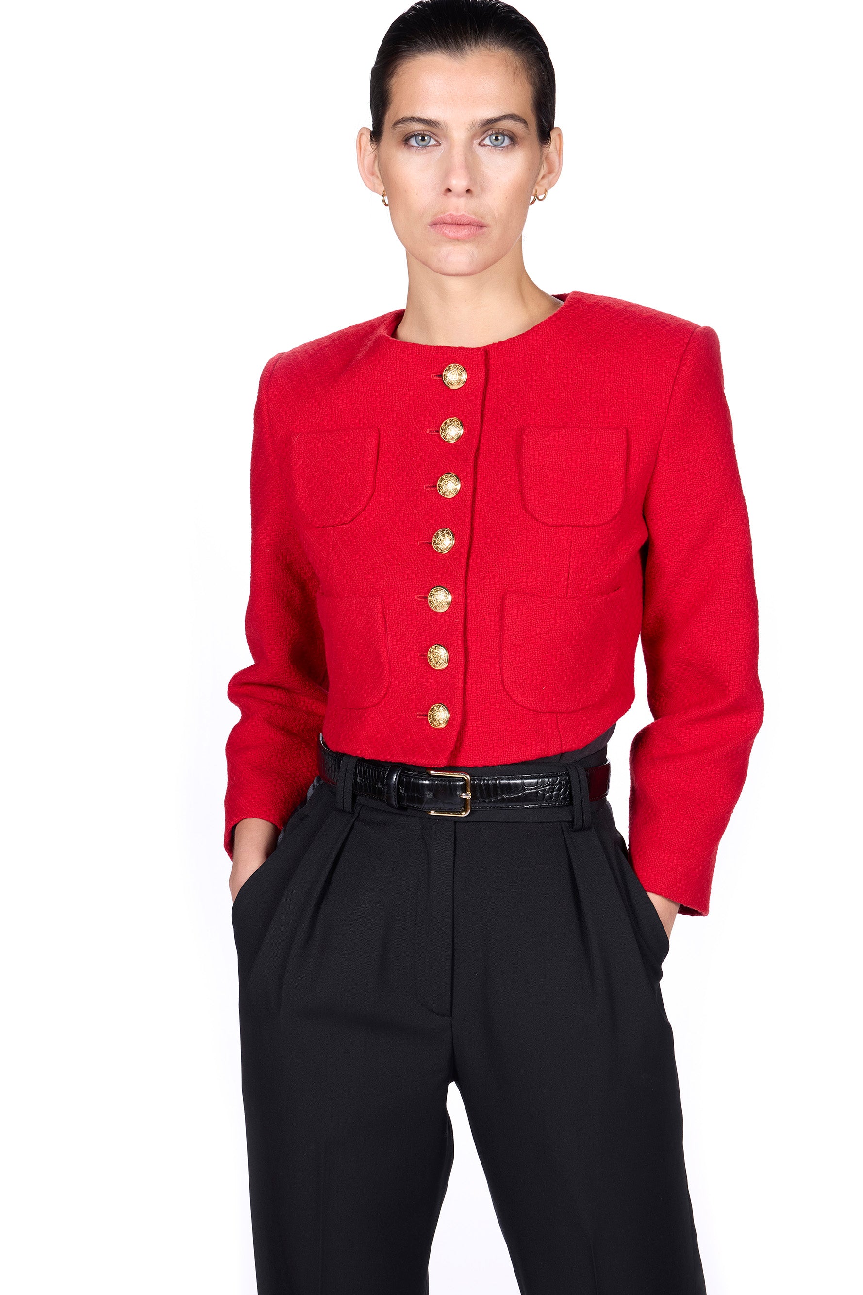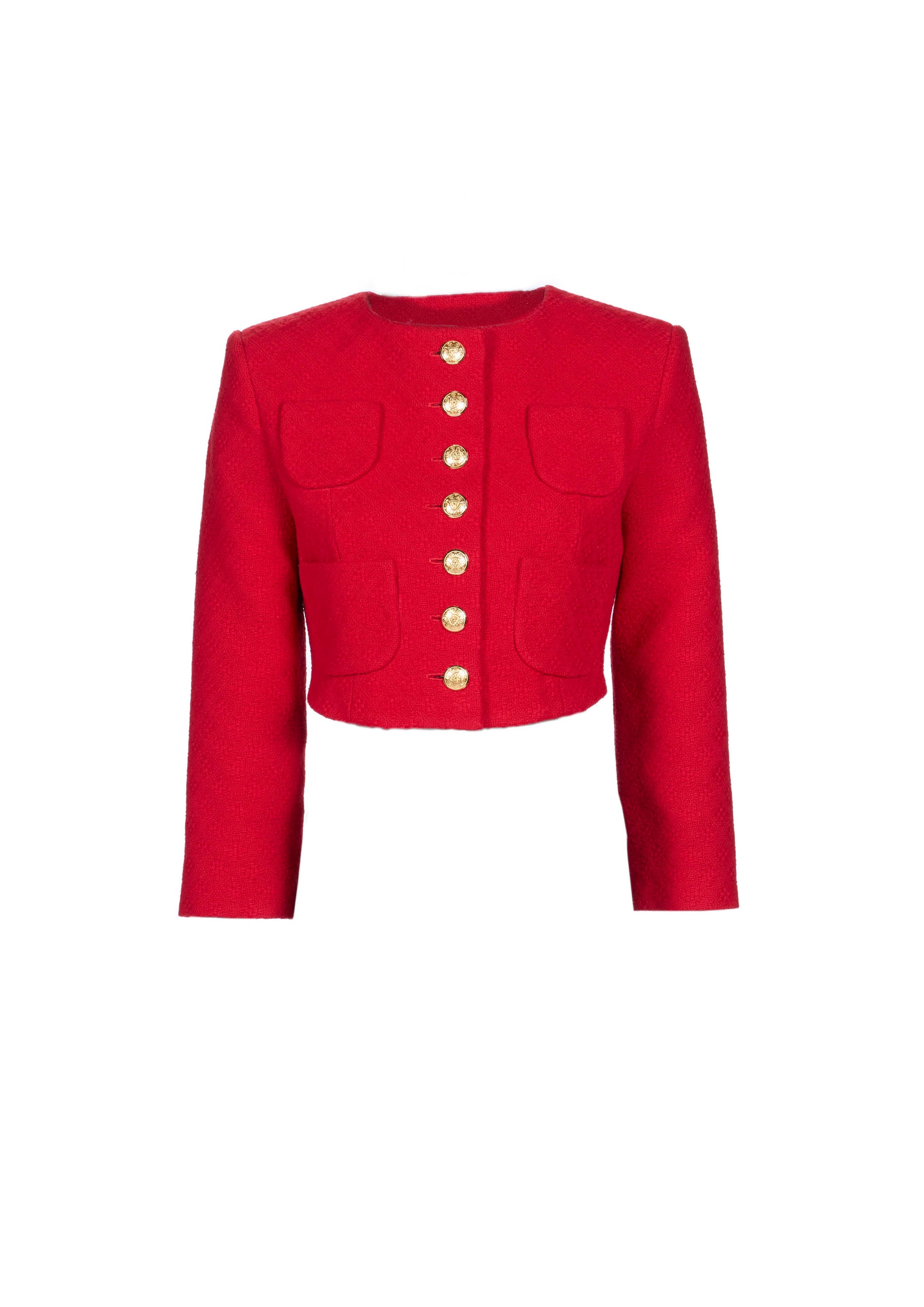Cropped wool-tweed jacket punctuated with vintage inspired buttons.
